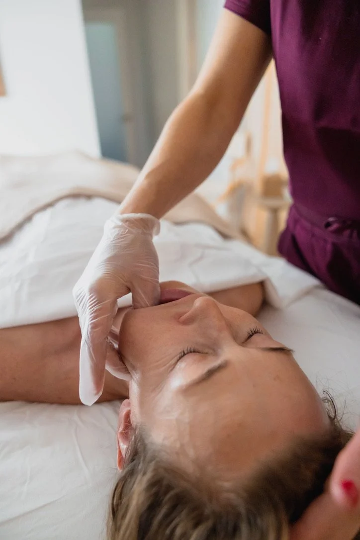 An intraoral massage that provides targeted relief for jaw tension and temporomandibular joint (TMJ) dysfunction. This specialized deep -tissue technique addresses both intraoral and external facial muscles, utilizing gloved hands for internal work. While not recommended during pregnancy, it’s an effective technique for induction massage.
